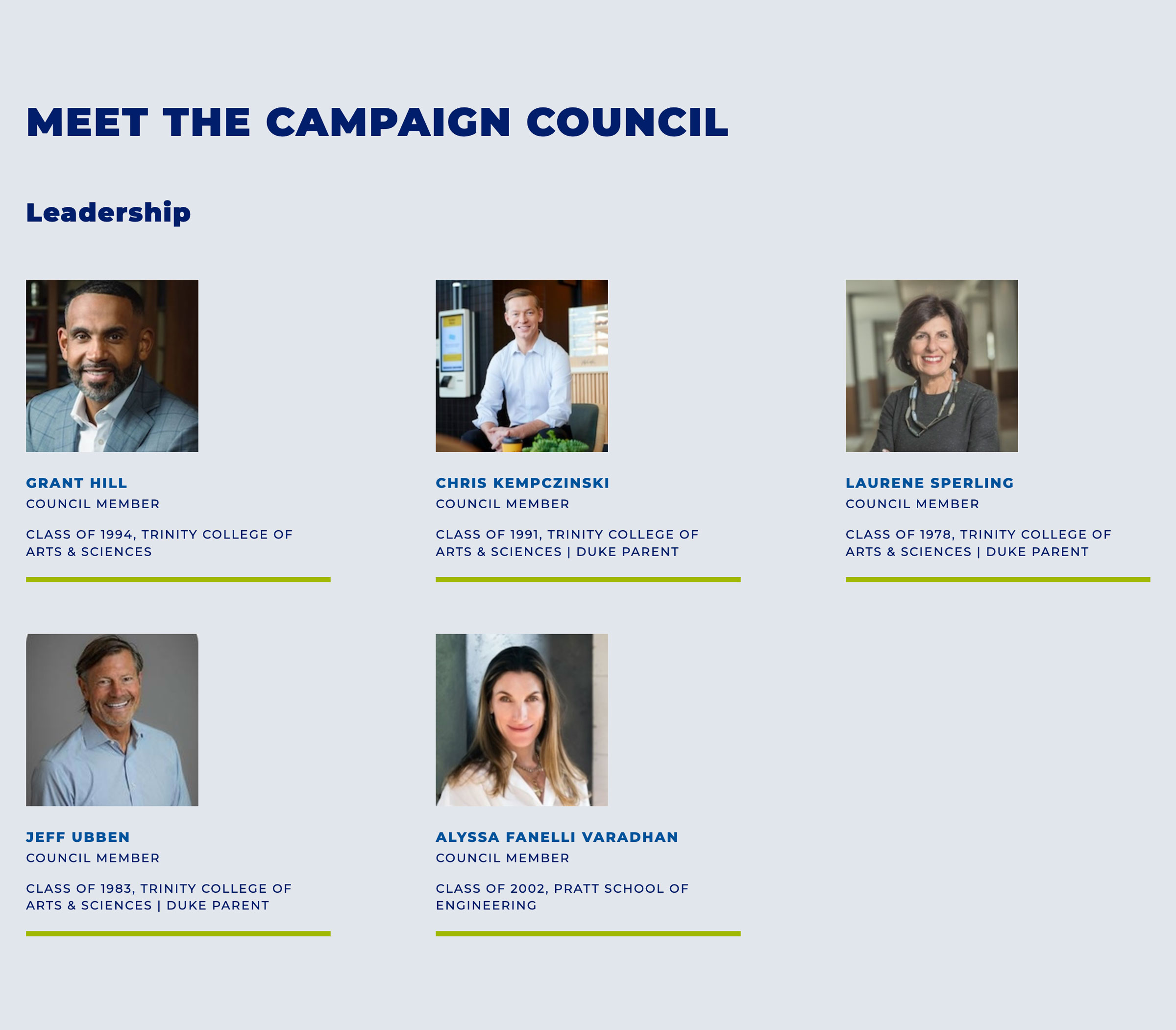 The MADE FOR THIS campaign site supports Duke University’s mission to rally its global alumni and community around key initiatives. It highlights the university’s efforts to drive impact in science and technology, climate, student experience, and health—areas where Duke is uniquely positioned to lead. The site presents these priorities through a clean, accessible design that invites exploration and support.